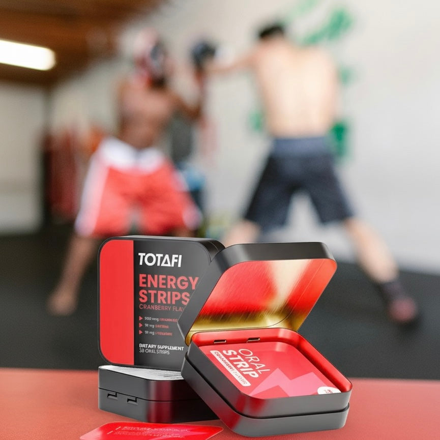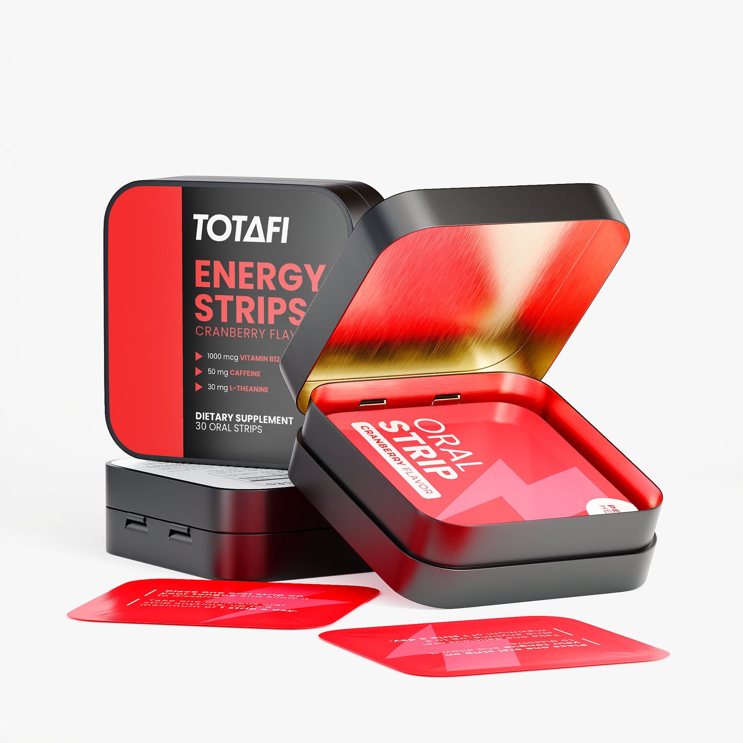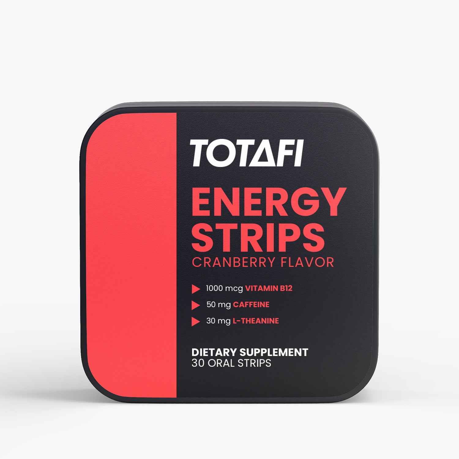 Energy Strips to cienkie paski rozpuszczające się w ustach, stworzone dla osób aktywnych i sportowców. Zawierają kofeinę z zielonej herbaty, L-teaninę i witaminę B12, które zapewniają szybki zastrzyk energii, poprawę koncentracji i wytrzymałość fizyczną bez efektu załamania i nerwowości.